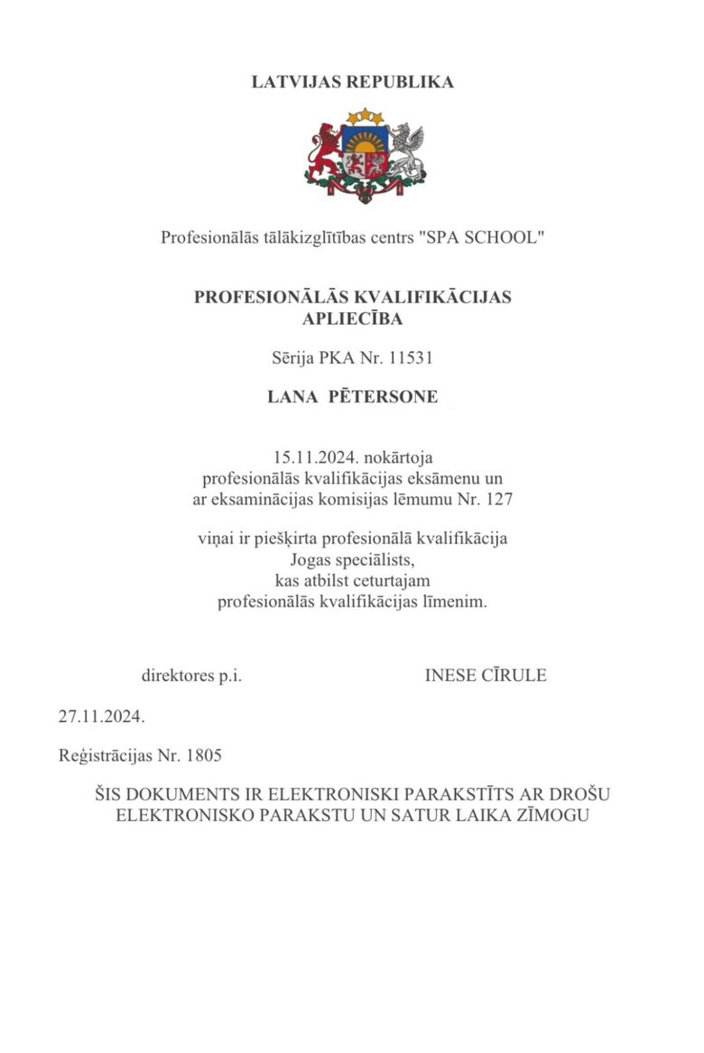 Mani sauc Lana Pētersone. Kopš 2024. gada esmu kvalificēta jogas speciāliste, taču joga manā dzīvē ienāca jau krietni agrāk. Tā sākās ar meditāciju – klusumu, apzinātību un vēlmi iepazīt sevi. Vēlāk pievienojās āsanas, elpošanas prakses, un ar laiku viss saplūda vienotā, pilnvērtīgā jogas ceļā. Man joga vienmēr ir bijusi iekšējās transformācijas un mentālās sakārtošanās rīks, kura pozitīvais “blakusefekts” ir veselāks un stiprāks ķermenis.